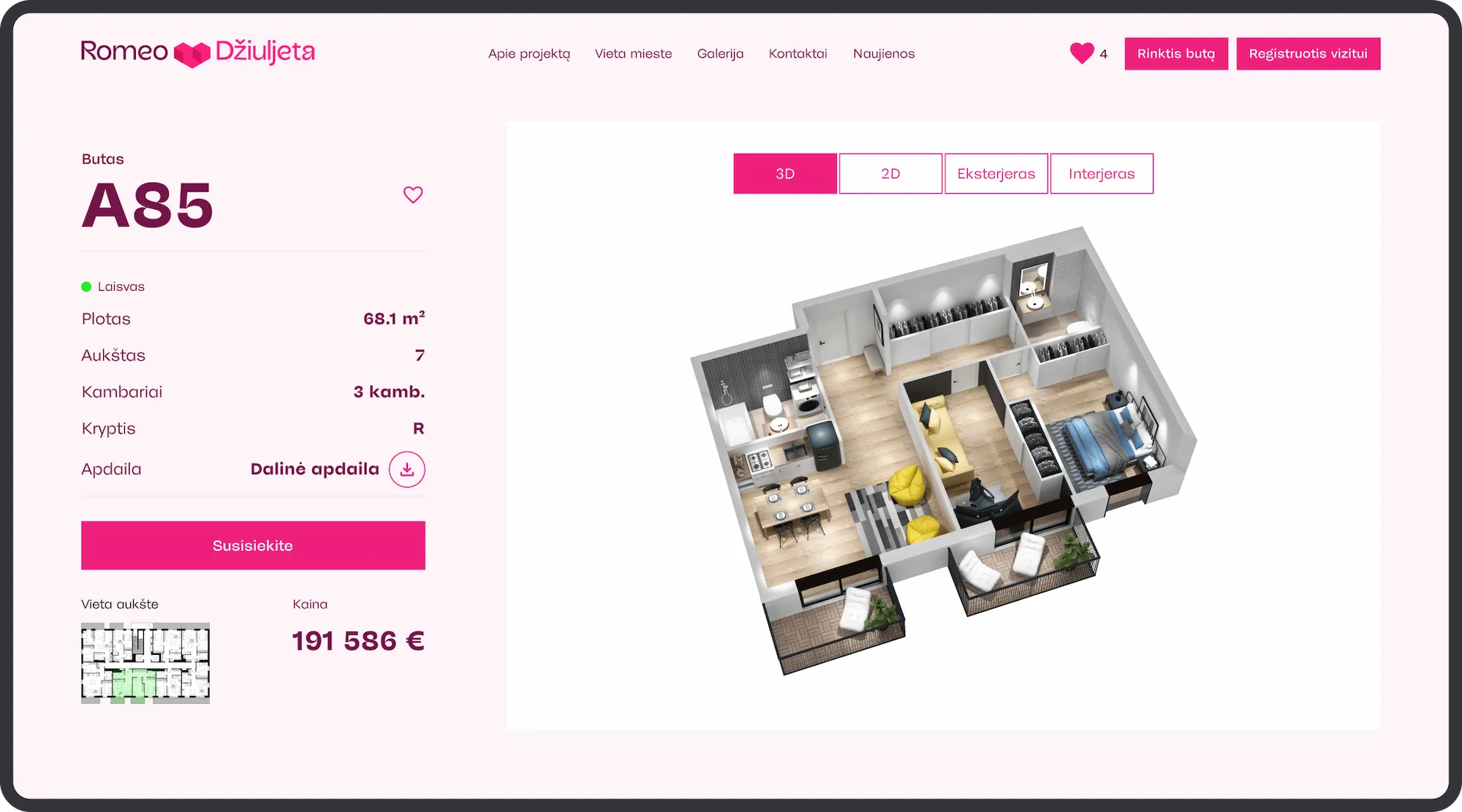 The website was built to capture attention fast — clearly communicating the project’s value and what makes Romeo ir Džiuljeta unique.