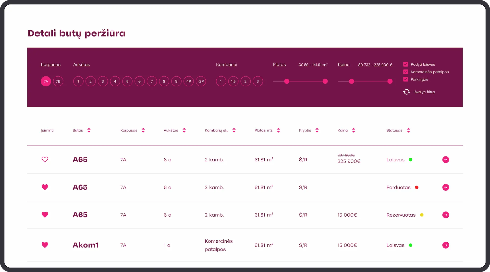 We created intuitive apartment pages that make it easy for buyers to explore layouts, features, and pricing — giving them a transparent view of what their future home offers.